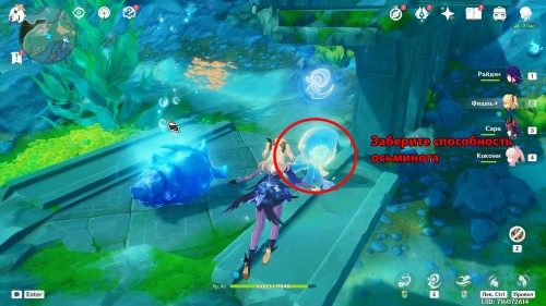 Сыграв на эхолюске, заберите умение ксенохромного осьминога, а затем проплывите через водяные кольца на север и убейте остроската, от которого исходит яркое свечение. После этого подберите оставшуюся после него энергию.