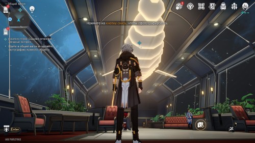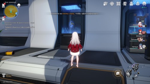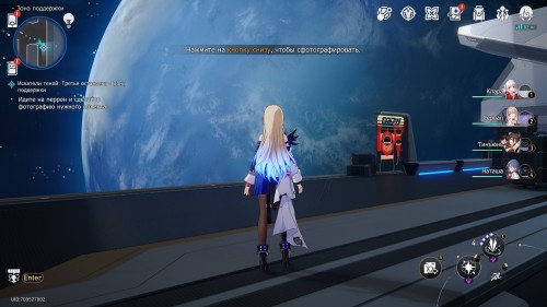 Второе фото тоже нужно будет сделать в главной локации космической станции. Осмотрев силуэт девушки, можно понять, что на картинке изображена Аста. Двигайтесь к выделенной зоне и отыщите на мостике розоволосую подругу. Как только вы приблизитесь к ней, стартует диалог, в котором вы попросите у нее разрешение на съемку.