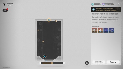 Телепортируйтесь в Общий вагон Звездного экспресса и отправляйтесь в Спальный вагон. Войдите во вторую дверь слева и поболтайте с Март 7, которая расскажет вам об испорченных фотографиях. Она попросит вас помочь ей сделать похожие фото. Согласитесь выполнить ее просьбу и отправляйтесь на прохождение обучающей миссии.