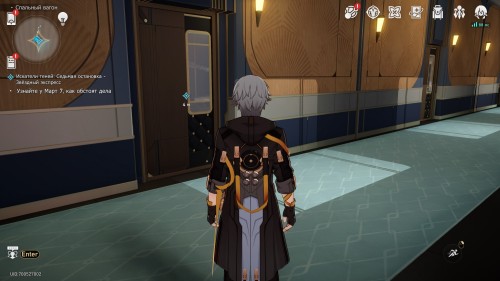Затем вы увидите, что силуэт напоминает Март 7, поэтому пройдите в Спальный вагон и войдите в каюту девушки. Далее вступите с ней в диалог. Можете выбирать любые ответы, так как это лишь изменит некоторые диалоги, но не повлияет на финал.