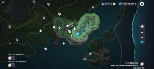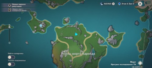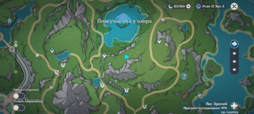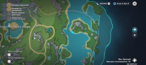 Сундук расположен в лагере хиличурлов на небольшом островке к востоку от леса Эриний.
