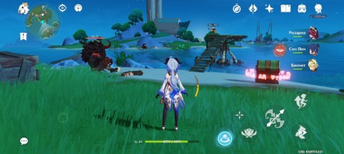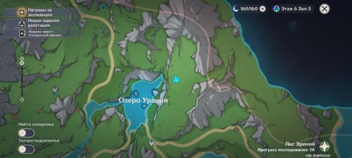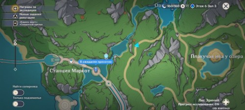 От Статуи Архонтов бегите вдоль реки к озеру Урании. Примерно на половине пути стоит лагерь хиличурлов, охраняющих сундук.