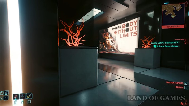 После недолгого разговора с нетраннером, направляйтесь в выставочный зал. Пройдите к лифту – он расположен чуть правее от того места, где вы только что беседовали с хакером. Нужное помещение располагается этажом ниже.