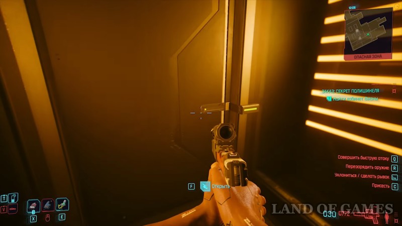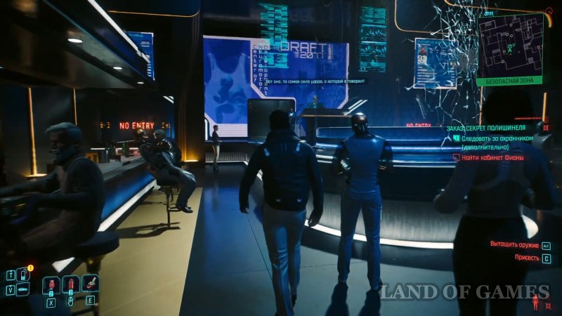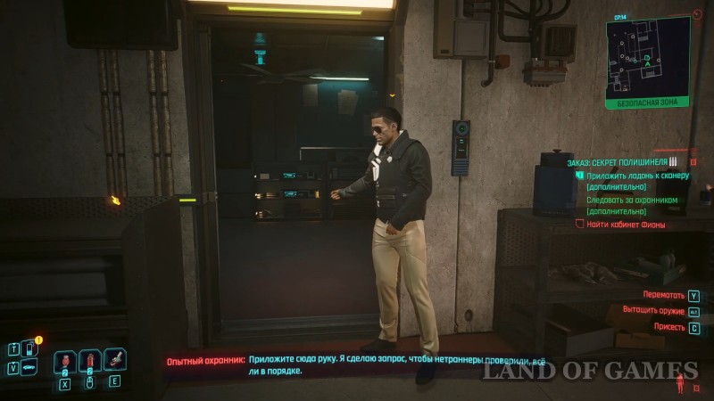 Охранник предложит пройти за ним. У вас вновь будет два варианта: следовать за мужчиной, либо сразу начать стрелять. Если последуете за охранником, то проверку вы не пройдете и вам грозит перестрелка. Можно попробовать оглушить секьюрити и спрятать тело, а затем спуститься на этаж ниже и пробраться в кабинет.