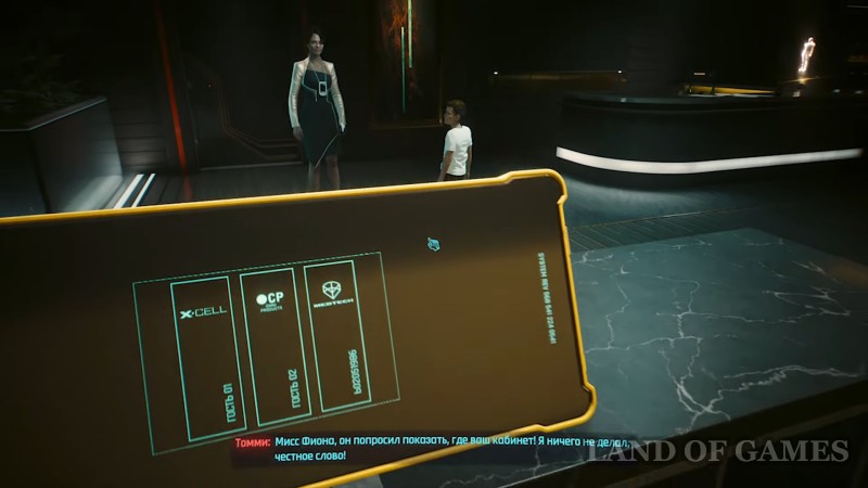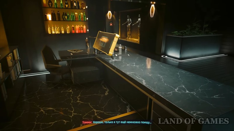 Вам будет предложено посетить бар – сделайте это. Когда окажетесь на месте, бармен попросит присесть с другой стороны стойки. После того как вы сядете, он подойдет к вам и заговорит. От него вы узнаете, что нужный вам кабинет находится ниже на один этаж.