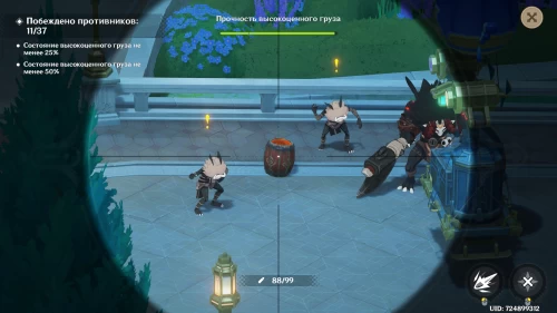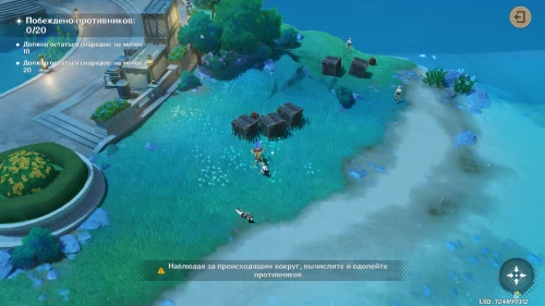 Для прохождения первого этапа вам нужно будет подстрелить 19 врагов (хиличурлов и митачурлов), потратив 50 снарядов. При этом для получения максимальной награды необходимо сохранить не менее 20 боеприпасов.