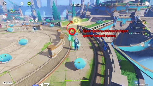 Арена, на которой будет разворачиваться погоня, выбирается случайным образом. Локации не сильно отличаются между собой. Вы возникните прямо перед своими воротами – их цвет соответствует цвету флажка над головой персонажа.