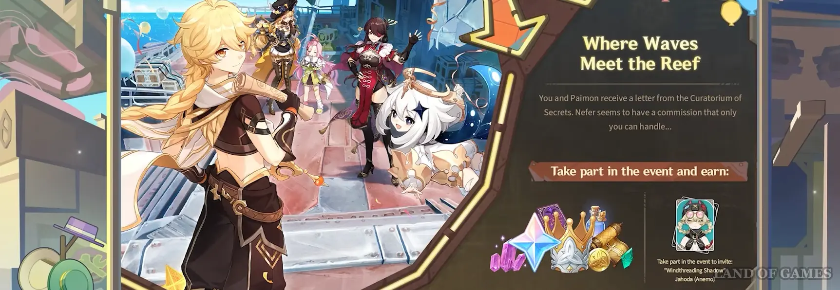 Достигнув 18-го ранга приключений и пройдя задание Архонтов «Синяя тень» вы сможете совершенно бесплатно получить 4-звездочную героиню Барбару. После ее выдачи страничка события исчезнет из вашего меню.