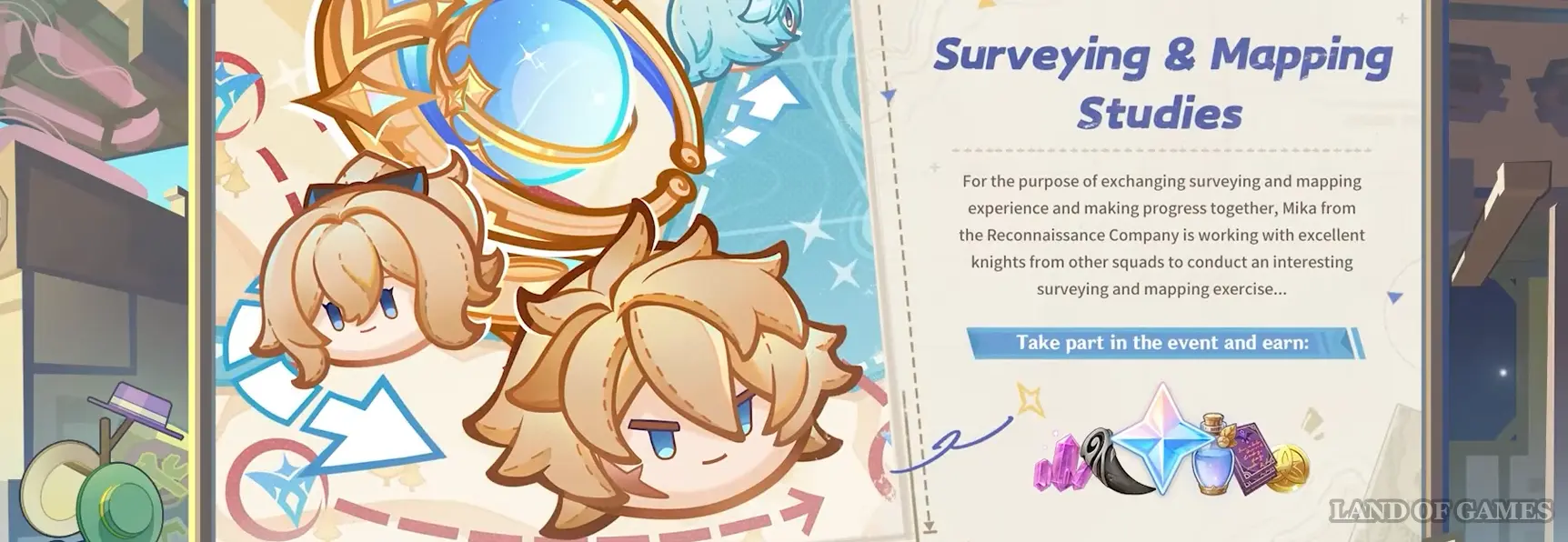 Первое временное событие патча 6.5 пройдет в Анемо регионе в формате полевого испытания по картографическому поиску. Игрокам предстоит проверять свою внимательность, точно отмечая цели на карте, а также обмениваться опытом с Микой и рыцарями других отрядов, достигая совместного прогресса.