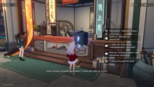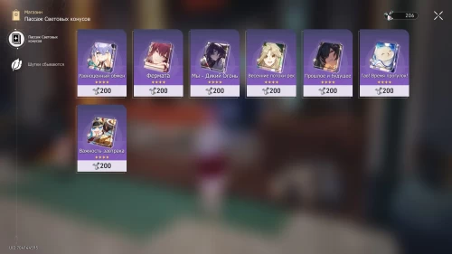 Поболтайте с Юцы (клетка с птицей), а затем выберите реплику «Войти в Бесценные ценности», чтобы открыть доступ к магазину. Здесь, как и в Зале забвения», вы сможете приобретать различные 4-звездочные световые конусы, тратя на это Сияющий отсвет. Однако вместе с выходом Чистого вымысла появилась новая валюта – Нефритовые перья, которые вы сможете потратить в другом разделе магазина.