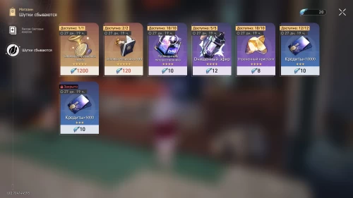 Откройте вкладку «Шутки сбываются». Здесь вы сможете обменять перья на утраченные кристаллы, кредиты, путеводители путешественника, очищенный эфир, обломки реликвии и самомоделирующуюся смолу. Отметим, что ассортимент товаров регулярно обновляется.