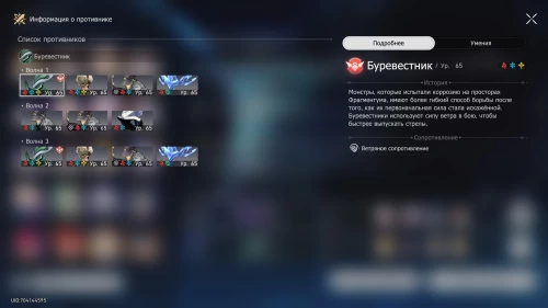 Буревестник может использовать «Ветряной арбалет», который позволяет ему выбирать цели со статусом Выветривание. На следующем ходу он применит «Нежданный шторм» для нанесения огромного урона выбранным персонажам.