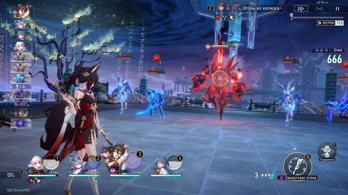Большинство врагов во второй половине уязвимы к ледяному и огненному типам урона, поэтому старайтесь брать героев соответствующих элементов. При наличии в группе Цзинлю мы советуем взять щитовика вместо целителя, так как Лидер команды способен одномоментно нанести огромный урон – у вас попросту не будет времени, чтобы вылечить своих персонажей.