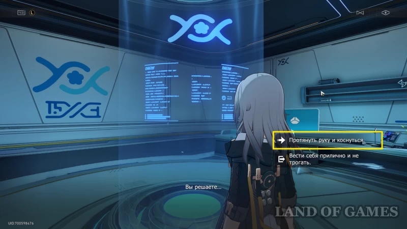 Нас интересует помещение за дверью с синей обводкой: внутри, за раздвижными стеклянными дверями, находится закрытая полем платформа. Осмотрите механизм, а после небольшого монолога решите дотронуться до манящей поверхности капсулы.