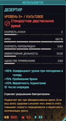 Культовый дробовик «Дезертир» лежит в оружейном ящике посреди гаража. Он является мощным оружием с одной особенностью: при выстреле Ви самовозгорается.