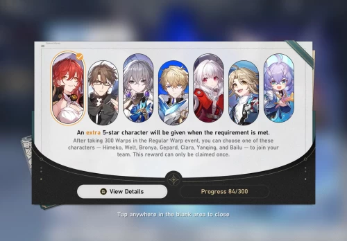 После совершения 300 круток в неограниченном по времени Звездном прыжке вы сможете забрать одного из семи стандартных персонажей на выбор.