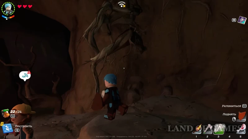 Необходимый ресурс в пещере найти несложно – это большие, светлые и крепки корни. Ниже на скриншотах мы показали примеры того, как выглядит корневяз. Они могут располагаться как внизу, так и наверху, поэтому будьте готовы построить пару-тройку лестниц, чтобы добраться до них.
