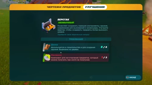 После того как вы улучшили верстак, зайдите в него и выберите Лесной топор. Для производства инструмента потребуется три кости и три деревянных палки.