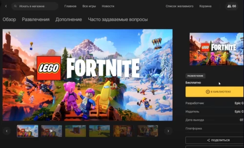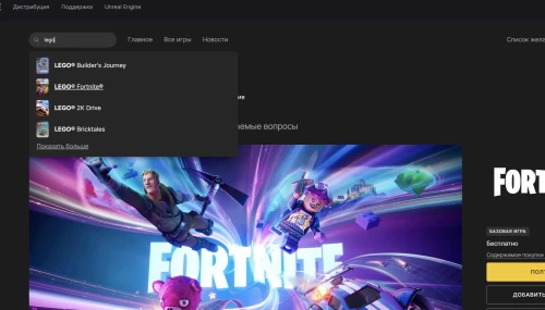 При желании сразу переходить в данный режим, минуя Fortnite, то мы советуем вам запускать его через лаунчер Epic Games Store. Для этого в программке в поисковой строке вбейте слово «Lego»