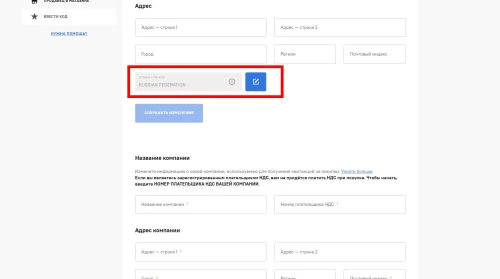 - Во вкладке «Настройки учетной записи» прокрутите страничку вниз, и вы увидите плашку «Страна/регион».