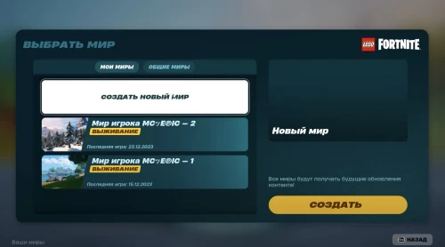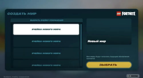 Как выбрать и создать мир в ЛЕГО Фортнайт