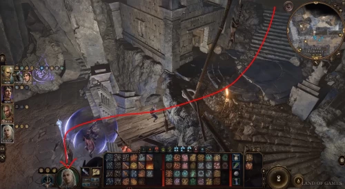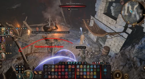 Если же вы пока не выполнили миссию, но все равно хотите исследовать Подземный город, то выберите лучника, а потом выстрелите в один из трупов, подвешенных над каменным кругом, чтобы их кровь окропила пол. Можно также поставить на этот круг одного из спутников и ударить по нему. Правда, это может привести к снижению одобрения со стороны компаньона.