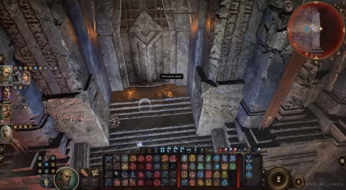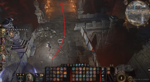 Добравшись до портала вниз, идите по большому мосту в сторону главного прохода в храм. Будьте осторожны, так как впереди много ловушек. Поднимитесь по ступенькам и взаимодействуйте с массивными дверями (X: 0, Y: 1004). Приложите ранее добытый амулет Баала, чтобы открыть проход, ведущий в непосредственно сам храм Баала.