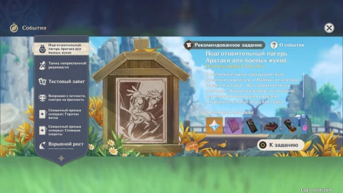 Как начать событие «Подготовительный лагерь Аратаки для боевых жуков»