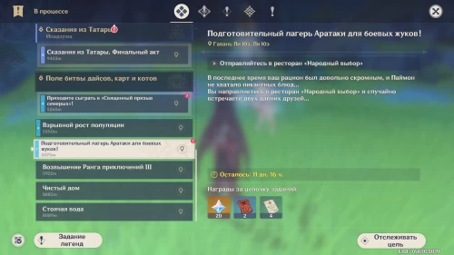 Теперь вернитесь в зону проведения турнира. Далее вас ждет сражение с жуком Владыка силы и ярости. Тут нет ничего сложного, так как игра будет подсказывать вам, как нужно действовать, поэтому просто следуйте инструкциям. На этом квест завершится, а вы получите 20 примогемов, 10 000 моры и 4 опыта искателя приключений.
