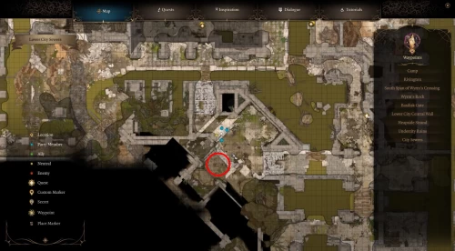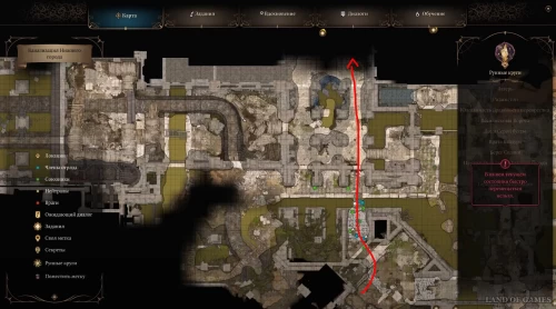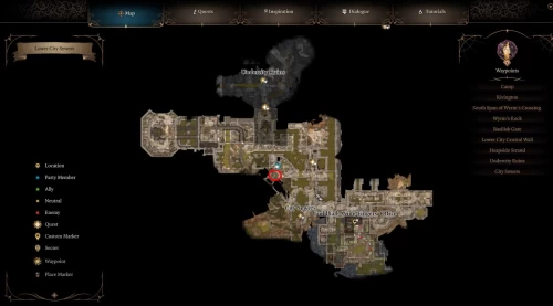 Он расположен в канализации Нижнего города, куда вы сможете попасть в рамках третьего акта. Мы рассказали о том, как туда можно пробраться, в отдельном руководстве. Затем двигайтесь в центр этой локации, в небольшое помещение (X: -123, Y: 837), показанное на карте ниже.