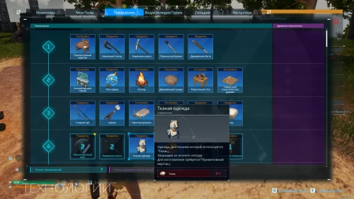 - Одежда защитит вас от ночного холода. Она изучается на 4-м уровне технологий и создается из ткани , которая, в свою очередь, добывается из шерсти с Ламболлов. Для этого необходимо изучить «Пастбище для скота».