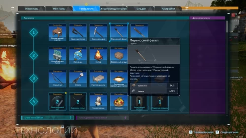 - Факел будет доступен вам с 1-го уровня технологий. Он позволяет как согреться, так и осветить пространство вокруг.