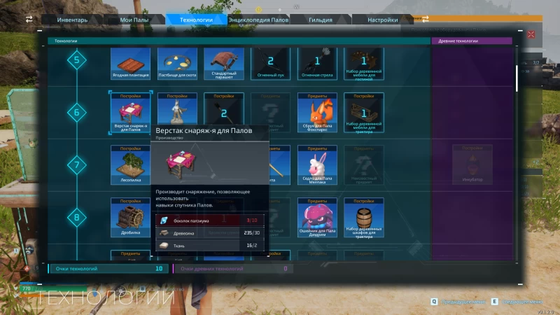 Первые 6-7 уровней технологий вы получите без проблем за короткое время, а вот дальше придется обустраивать базу новыми постройками, ловить все больше Палов и изучать мир игры, чтобы быстрее прокачиваться. Точки перемещения расположены достаточно далеко друг от друга, и чтобы наиболее быстро добраться до нужного места, стоит обзавестись первым ездовым Палом.