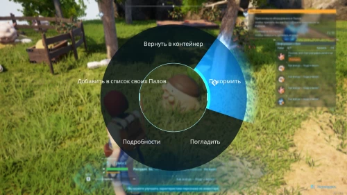 - Через инвентарь. Таким способом можно кормить только Палов, путешествующих с вами. Выберите предмет, которым хотите накормить Пала и нажмите правую кнопку мыши. У вас откроется меню цели для применения.