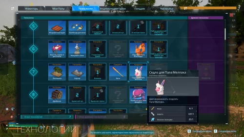 Мелпака отлично справится с этой задачей и облегчит путешествие по миру. Но для того, чтобы оседлать Пала, необходимо будет сначала также изготовить «Верстак снаряжения для Палов», а на 7-м уровне технологий изучить «Седло для Пала Мелпака».