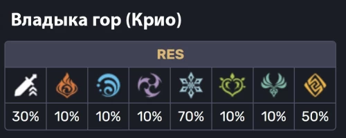 Во многом эти владыки гор Чичжан похожи на обычных геовишапов, к примеру, они обладают такой же высокой устойчивостью к физическому (30%) и Гео (50%) урону, поэтому использовать физ. пачки и Гео дамагеров против них не рекомендуется. Ицзи к тому же обладает 70-процентным сопротивлением к Пиро элементу, а Тяньюй – к Крио стихии, что еще сильнее сужает пул подходящих героев.