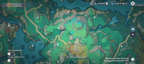 Затем вернитесь к телепорту и летите на юг — здесь два зверя захватили лагерь хиличурлов.