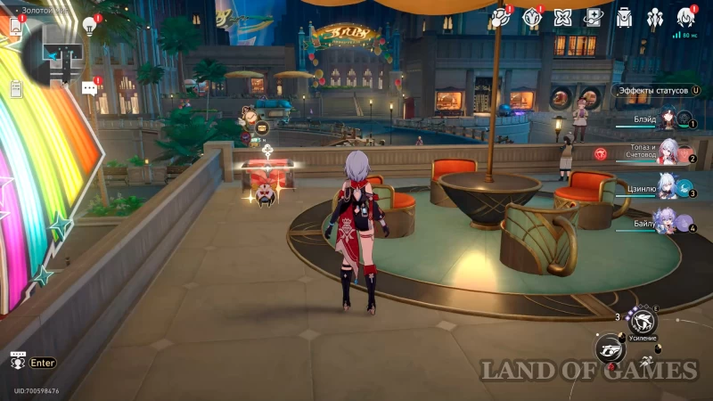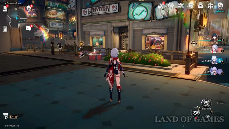 Очередная точка интереса находится на севере центральной площади. Если телепортироваться к монументу Часика, от него подняться по центральной лестнице, а следом пробежать в ближайший переулок на восток — вы наткнетесь на сундучок, стоящий на отдельной площадке около вывески с радужной ракетой.