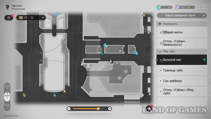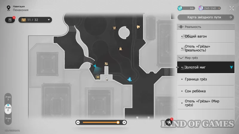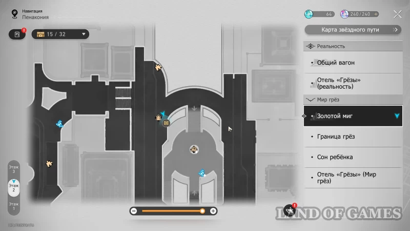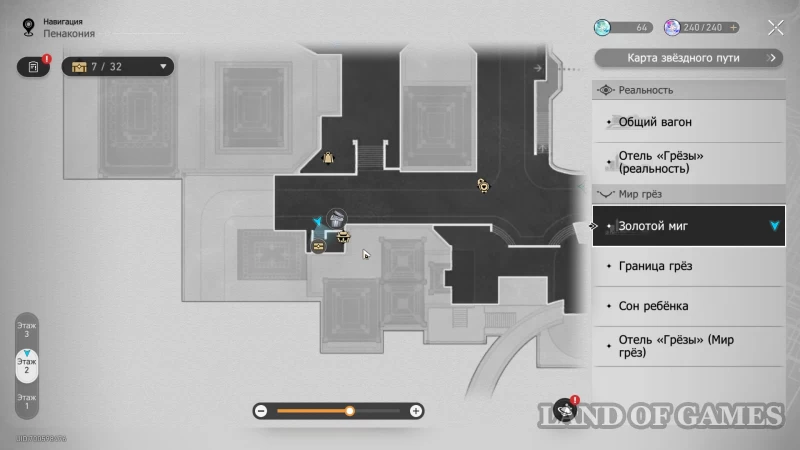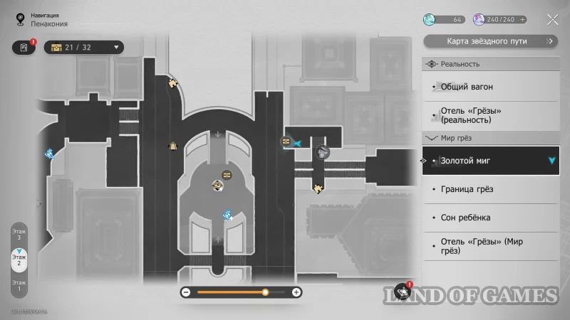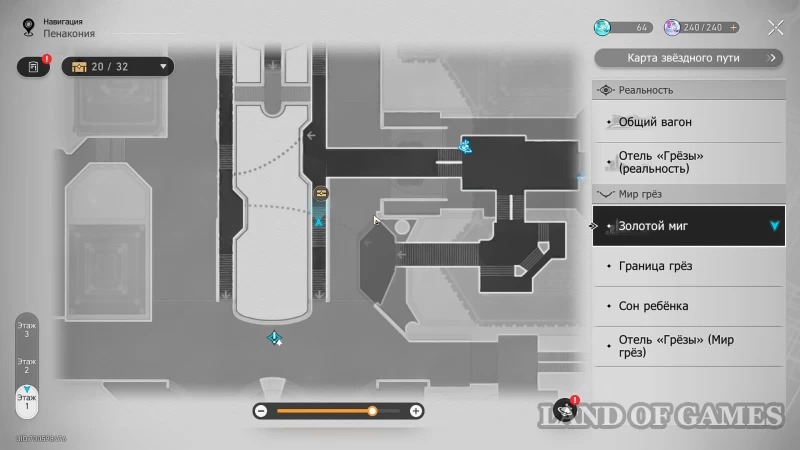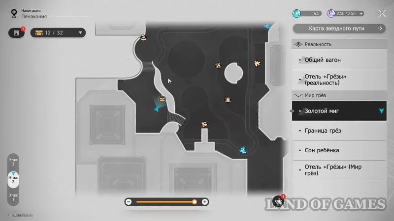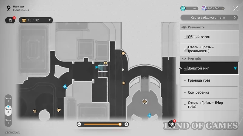 И наконец, спускаемся на 1-й этаж: от телепорта на Улице снов проследуйте к промежуточной площадке на юге, а затем загляните в небольшое углубление. Здесь, между чемоданами, можно найти и следующий сундучок.