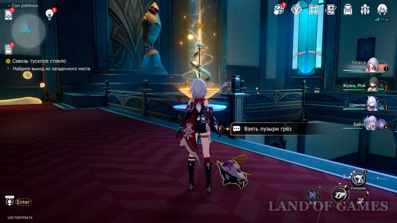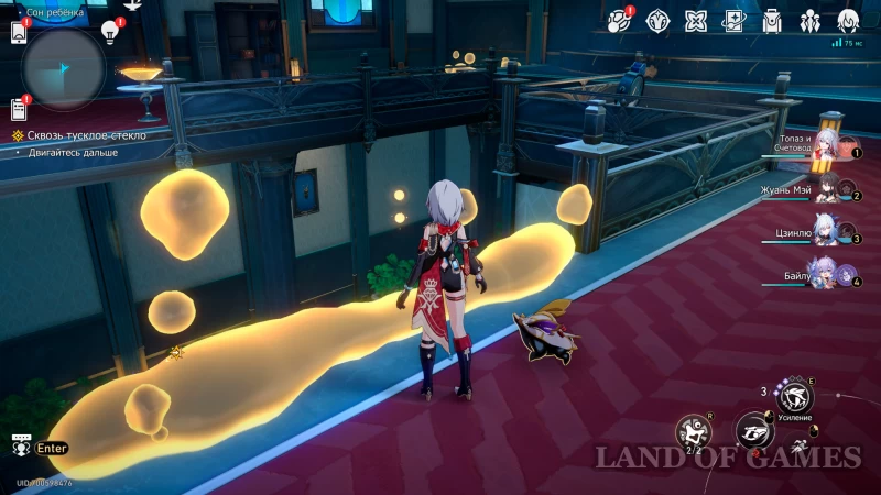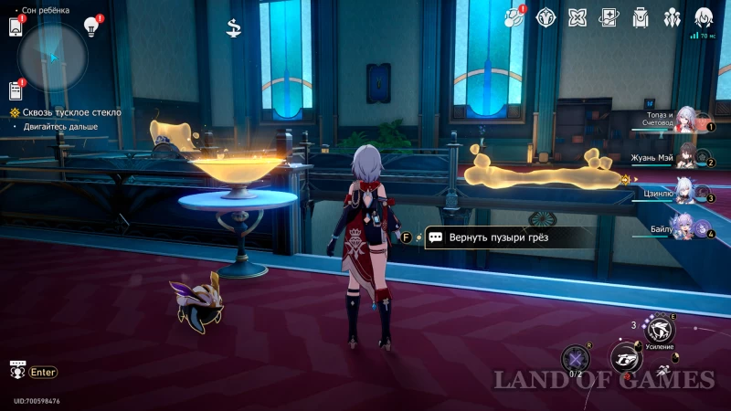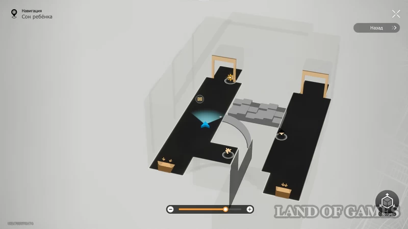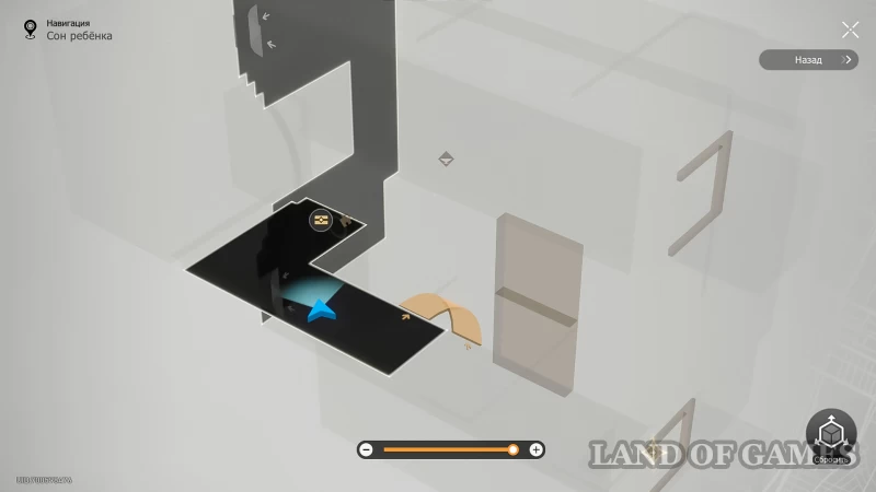 Далее бегите по коридору на север, до первого поворота влево: тут находится вход в помещение с 3D-картой. Подойдите к фонтанчику с мемориями, пополните запас пузырьков и бегите к сгустку у стены напротив (около него кликаем «R» на ПК, чтобы раскрыть мостик).