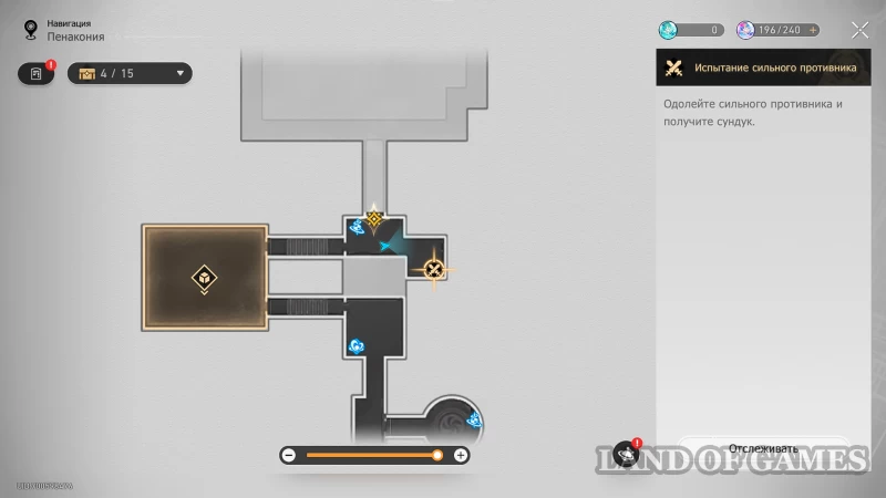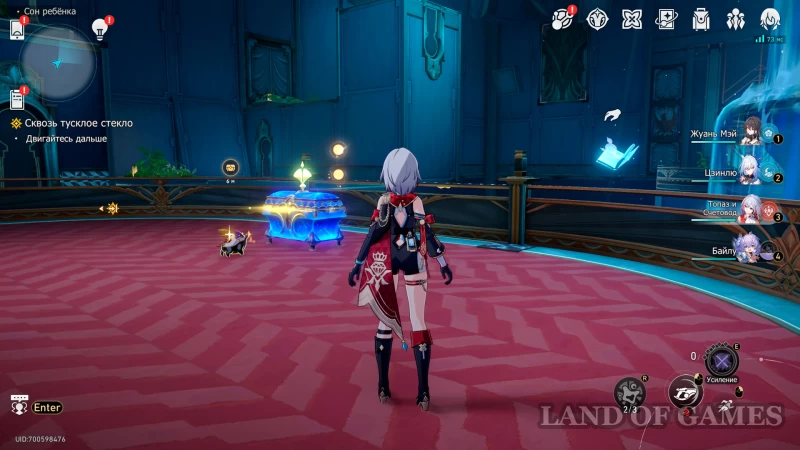 Выйдите из 3D-помещения через северный проход или тапайтесь к якорю «Завихрение Мира грез»: в закутке на восточной стороне коридора вас ждет битва с усиленным мобом, за победу над которым дадут возможность открыть роскошный чемоданчик.