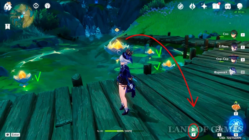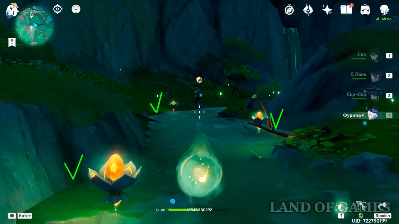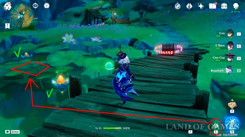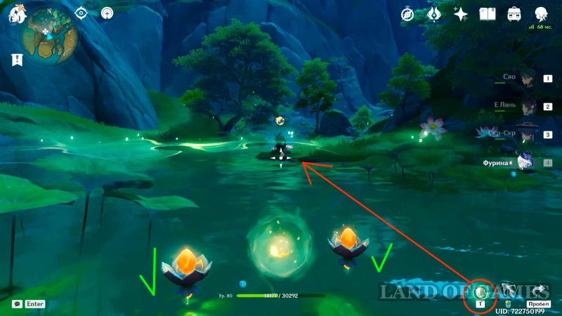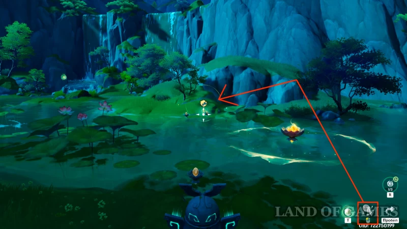 - Захватывать (клавиша «Т» на ПК) крупные фонари-кувшинки;