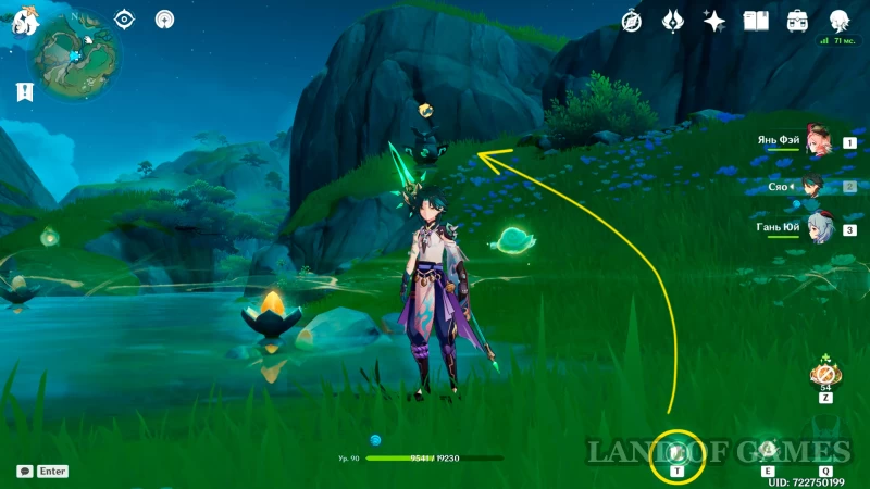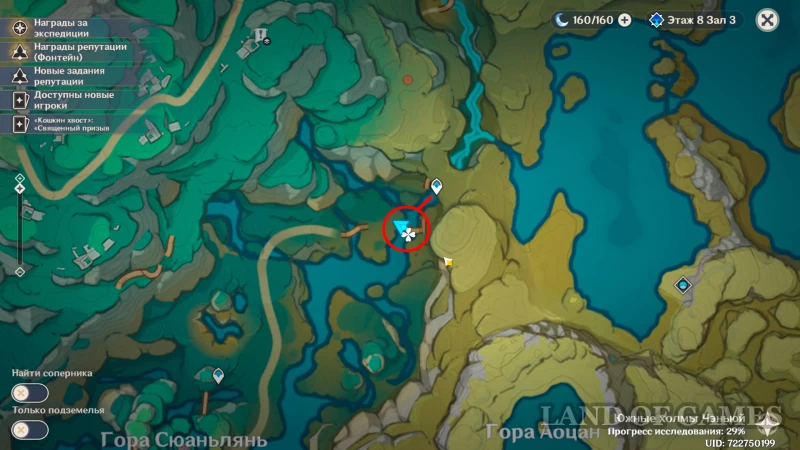 Долее отправимся к подножию горы Сюаньлянь: в отмеченном нами месте размещена еще одна головоломка с кувшинками, рядом с которой установлена статуя совы. Перед тем, как ее решить, немного подготовимся: