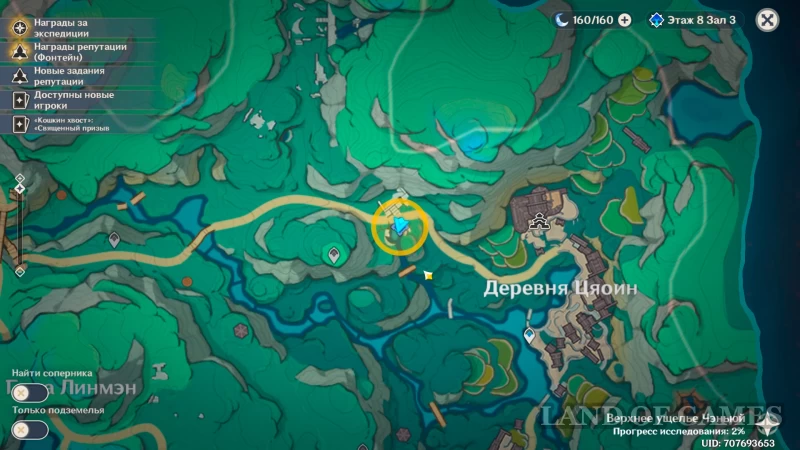 Пожалуй, самая крупная головоломка с кувшинками находится в низине под одним из водопадов Верхнего ущелья Чэньюй. У ее решения несколько этапов и целых две награды: обычный и драгоценный ларцы.