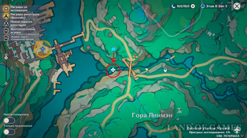 Очередная маленькая головоломка ждет на противоположном крае подножия Сюаньлянь (на карте выше отметили ближайший телепорт).