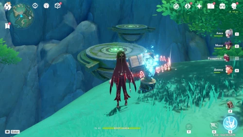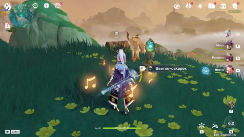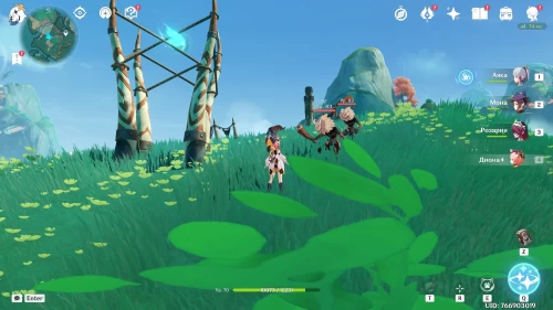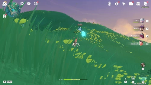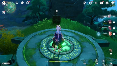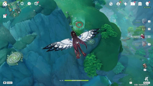 С указанного нами выступа спрыгните вниз в западном направлении, и разберитесь со всеми хиличурлами в лагере. Затем разрушьте клетку, в которой содержится фея. Начните сопровождать освободившегося духа.