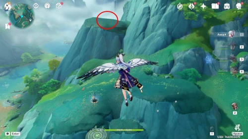 Перепрыгните на вторую платформу и воспользуйтесь воздушным потоком, чтобы взмыть вверх. Поверните камеру направо, и вы увидите там Анемо барьер. Спланируйте внутрь него, чтобы убрать преграду и освободить фею.