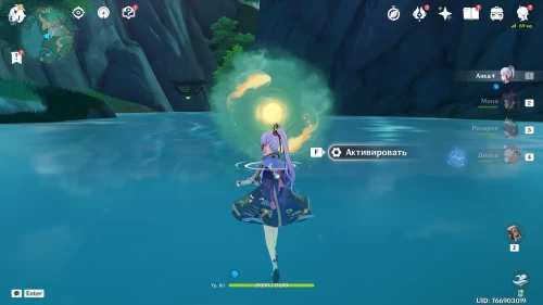 Когда все четыре платформы соберутся вместе, на центральной площадке появится прыжок золотого карпа. Подойдите к нему и нажмите на кнопку «Активировать»