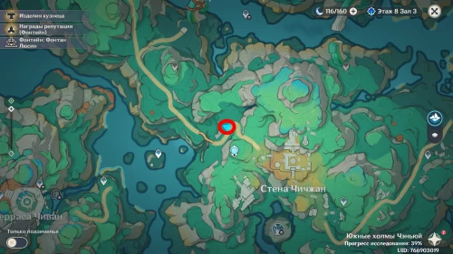 Телепортируйтесь к статуе семи Архонтов возле Стены Чичжан, а затем спуститесь немного на север, и возле ступенек вы обнаружите очередной каменный стол. Чашка снова будет отсутствовать.
