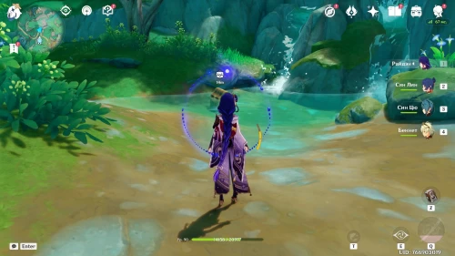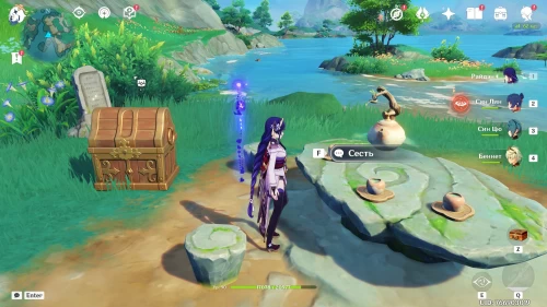 После этого над прудом позади вас появится водяная жемчужина – активируйте ее, чтобы превратиться в карпа и приземлиться рядом с драгоценным сундуком.
